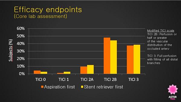 ASTER 연구는 전향적 무작위 다기관 대조군 오픈라벨 맹검 임상시험으로 혈관내 치료 1차 치료전략으로 ADAPT와 SR 전략을 비교했다.