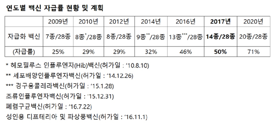 식약처는 향후 2020년까지 백신 자급율을 70%까지 높이는 등 우리나라 백신 주권 확립을 위하여 국산 개발을 적극 지원해 나가겠다고 밝혔다.