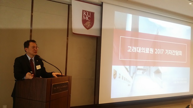 10일 서울 웨스틴조선호텔에서 열린 '고대의료원 2017년 기자간담회'에서 고대의료원은 올해 예산 첫 1조 원 돌파에 힘입어 2025년까지 상승 곡선을 이어가기 위한 구체적인 계획을 밝혔다.
