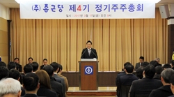 우선 종근당(대표 김영주)은 충정로 본사에서 제4기 주주총회를 열고 지난해 8320억원의 매출을, 612억원의 영업이익을 달성했다고 보고했다. 아울러 액면가 대비 36%인 주당 900원의 현금배당을 실시키고 했다.