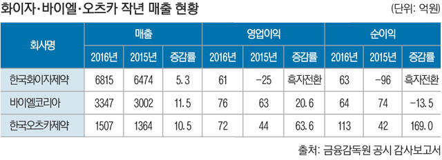 한국화이자제약(2015년 12월~2016년 11월)은 작년 6815억원의 매출을 기록해 전년 6474억원 보다 5.3% 늘었다.