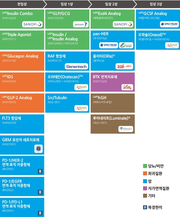 한미약품의 23개 파이프라인은 바이오신약 14개와 합성신약 9개로 구성됐으며, 전임상 단계에 있는 신규 후보물질 9개가 추가됐다.
