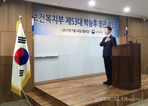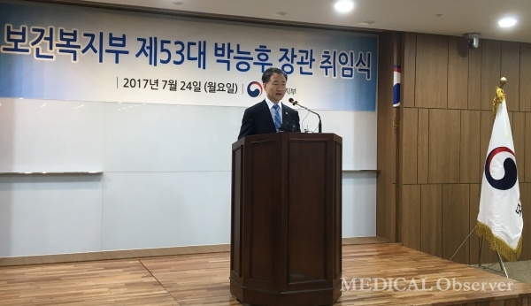 박 장관은 24일 오후 정부세종청사에서 취임식을 갖고, 복지부 장관으로서 첫 발을 내딛었다.