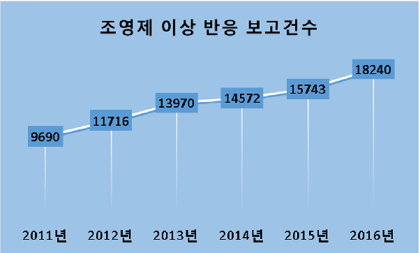 최근 한국소비자원이 조사한 결과에 따르면 조영제 이상 반응 보고 건수가 증가 추세인 것으로 나타났다. 2011~2016년도에 보고된 8만3931건의 조영제 이상반응 보고 건수 중 심각한 이상반응은 총 2409건이었다. 이중 사망 사례는 14건이었다.