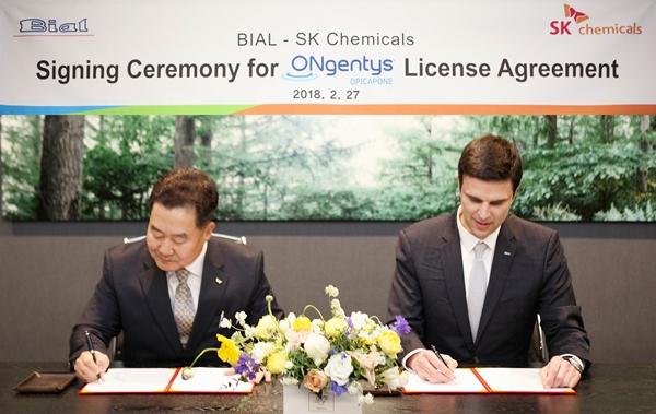 SK케미칼은 포르투칼 제약사 비알(BIAL)이 개발한 파킨슨 치료제 온젠티스(오피카폰)를 국내 독점 공급하기 위한 라이선스 계약을 체결했다고 5일 밝혔다.