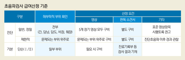 상복부 초음파 급여는 간·담낭 ·담도·비장·췌장에 질환이 있거나 의심돼 의사 참여하에 검사가 시행된 경우에만 보험급여를 적용받을 수 있다.