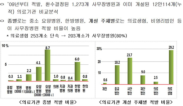 적발된 사무장병원에 대해서는 고강도의 처분을 내려 의료기관 재개설 등 불법행위의 재발을 막는다.