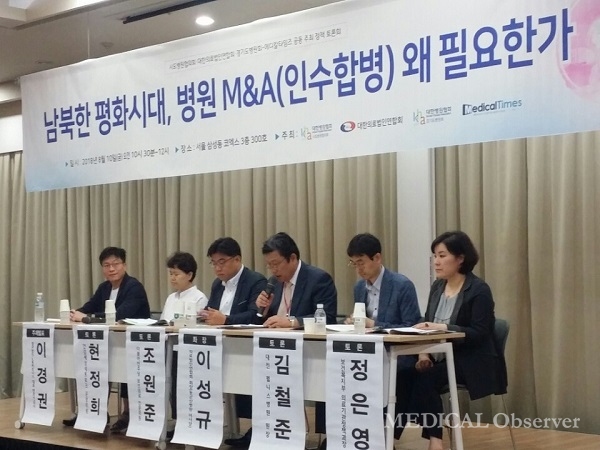 토론회 주제는 '남북한 평화시대와 병원 M&A 왜 필요한가'지만 실제로는 병원 인수합병 설명회에 가깝다는 지적이었다.