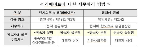 이에 따라 국세청은 리베이트를 접대비로 인정할 게 아니라 리베이트 수령자에 소득처분을 해야 한다는 게 박 의원의 주장이다.