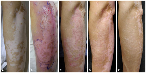 비배양 표피세포이식술을 시행한 환자들은 이식 한 달 뒤부터 광선치료를 재개했으며, 3개월 이상 치료한 경우를 분석 대상으로 선정했다. 연구 결과, 표피세포이식술을 시행한 20례 중 17례(85%)가 치료에 성공했다.
