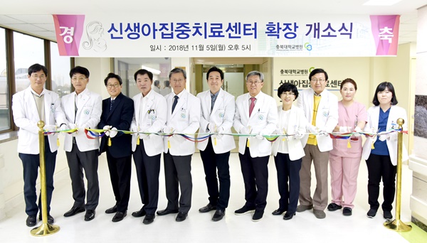 충북대병원은 5일 본관 4층에서 환자 안전과 병원 내 감염 예방을 위한 신생아집중치료센터 리모델링 공사를 마치고 개소식을 가졌다.