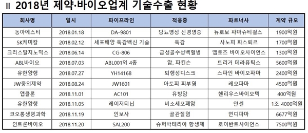 올해 11월에는 한 달 동안 무려 4건의 기술이전이 진행됐다. 이달에만 진행된 기술수출 금액만 2조 8770억원.