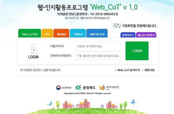 충북광역치매센터는 충북 도민의 보편적 치매예방 프로그램으로 '웹-인지훈련(Web-Cognition Training. 이하 웹-코트)프로그램 v1.0'을 3일 오픈했다.