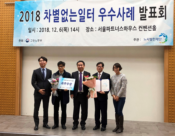 강동경희대병원(원장 김기택)이 12월 6일 고용노동부 산하기관인 노사발전재단에서 주최하는 '2018 차별 없는 일터 우수사례 발표회'에서 올해 최우수사업장에 선정됐다.