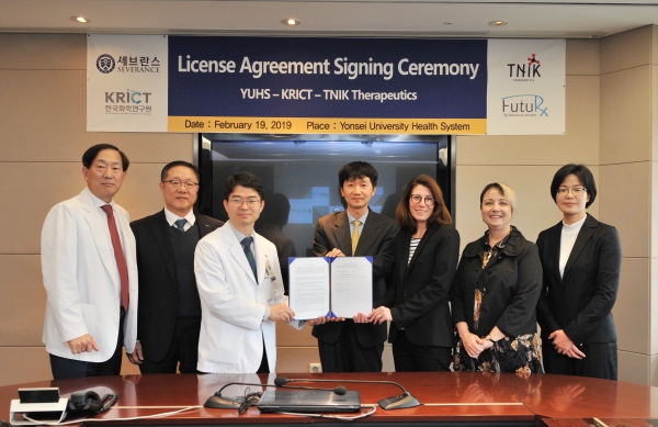 연세의대 신상준 교수(연세암병원 종양내과)와 한국화학연구원 이혁 의약바이오본부장 연구팀은 이스라엘 퓨처엑스(FutuRx)사와 대장암 표적치료 선도물질(TNIK 저해 IC50 3 nM, TNIK 저해제)에 대해 기술이전 계약을 체결했다고 19일 밝혔다.