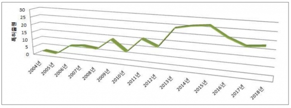 실제 2014년부터 2018년까지 최근 5년간 109건으로, 지난 5년(2009~2013년) 72건에 비해 51.4% 대폭 증가했다.