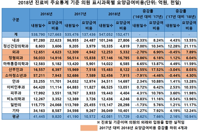 심평원, 2018년 진료비 주요통계 의원 표시과목별 요양급여비용 공개