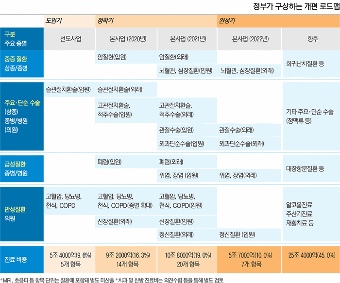 시범사업은 △의료의 질과 비용 통합관리로 가치를 높일 수 있는 영역 △공공성이 강하고 전문성‧자율성 보장이 필요한 영역 △과잉진료 등 낭비 우려가 있는 영역 △건별 심사 혹은 제한적 급여기준으로 의료이용의 왜곡이 우려되는 영역을 중심으로 선정됐다.