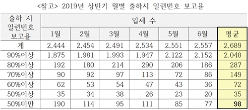 분석 결과 출하시 일련번호 보고율 50% 이상인 업체는 2591개소(96.4%)이며, 50% 미만인 업체는 98개소(3.6%)로 확인됐다.