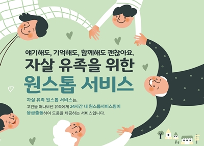 자살 유족 원스톱서비스는 지난 9일 자살예방정책위원회에서 발표한 자살예방 국가 행동계획의 중점 보완과제인 고위험군에 대한 촘촘한 지원체계 마련의 일환으로 추진된다.