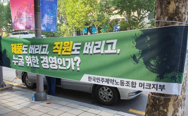 실제 이날 집회에 동원된 피켓에는 '한국머크는 무책임한 강제해고, 예고 없는 기습해고를 즉각 철회하라', '명분없는 사업부 정리 즉각 철회하라' 등의 문구가 써 있었다.