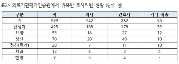 자율인증 대상인 급성기병원 조사위원 규모의 8분의 1에 불과해 불균형 심각