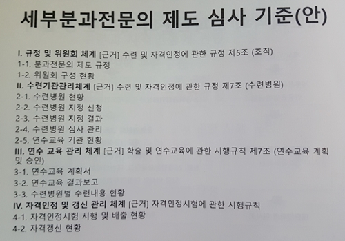 의학회는 이 같은 문제점들을 순차적으로 해결하기 위해 세부·분과전문의 제도 심사기준(안)과 재인증 제출서류 및 평가 기준(안)을 마련했다고 밝혔다.