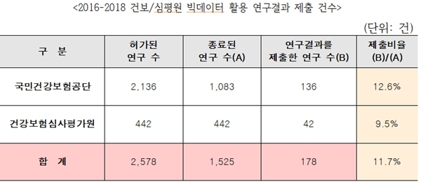 연구자들이 연구결과를 제출하는 건수가 매우 적어 건보공단과 심평원의 빅데이터를 어떻게 활용했는지 확인할 방법이 없기 때문이다.