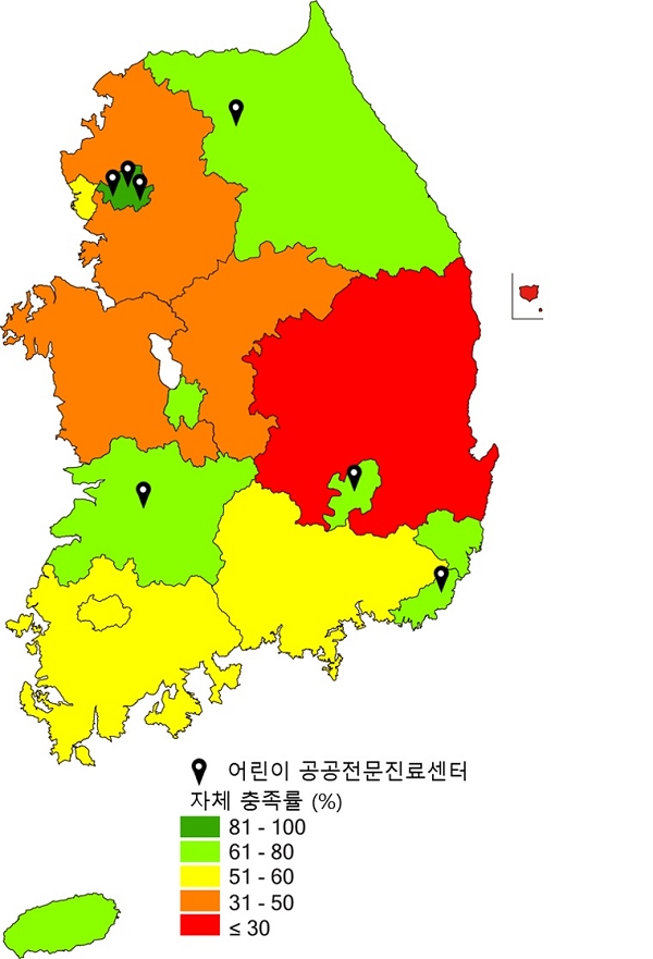 또한, 소아청소년의 거주지와 사망 전 1년간 이용한 주 의료기관의 소재지를 비교한 지역 충족률은 평균 55.9%다. 서울(89.6%), 대구(74.2%), 제주(72.5%)에서 높았고, 충북(49.6%), 경기(43.9%), 충남(35.3%), 경북(28.8%)에서 낮았다.
