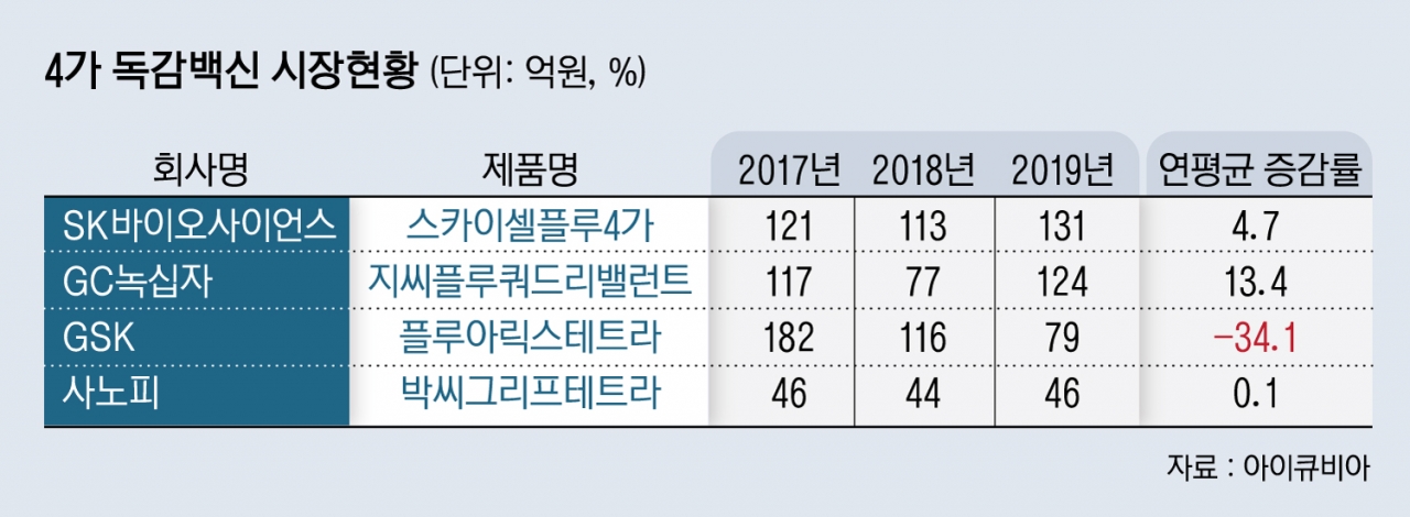 4가 독감백신 시장 선두 SK바이오사이언스...GKS, 하락세 명확