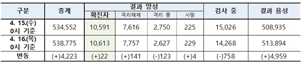 질병관리본부 중앙방역대책본부는 코로나19 국내 확진자가 16일 0시 기준 총 1만 613명으로 전일 대비 22명 늘었다고 밝혔다.