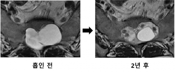 논문에 따르면 탈로브씨 낭종 증후군 환자에게 이 시술을 시행해 척추 물혹 안의 뇌척수액을 뽑아낸 결과, 통증이 유의미하게 호전됐고 2년 후 촬영한 MRI에서도 척추 물혹이 시술로 작아진 크기를 유지하며 척추 신경을 압박하지 않는 것으로 확인됐다.