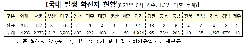 한편, 22일 0시 기준 질병관리본부 중앙방역대책본부에 따르면 코로나19 국내 신규 확진자는 총 315명으로 이중 서울이 127명으로 가장 많고 그 뒤를 경기 91명이 잇고 있다.