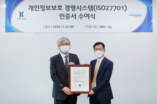 심평원은 HIRA시스템(심사·평가시스템, DUR시스템, 국민포털, 진료비포털 등)의 개인정보보호 관리체계 전반에 대해 DNV·GL 인증원의 심사를 거쳐 인증을 획득했다.