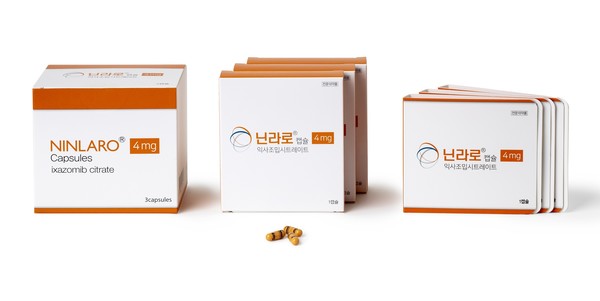 닌라로는 현재 국내서 유일한 다발골수종 경구용 3제 프로테아좀 억제제다. 한달에 한 번 의료기관을 방문해 주 1회, 월 3회 복용하면 된다.