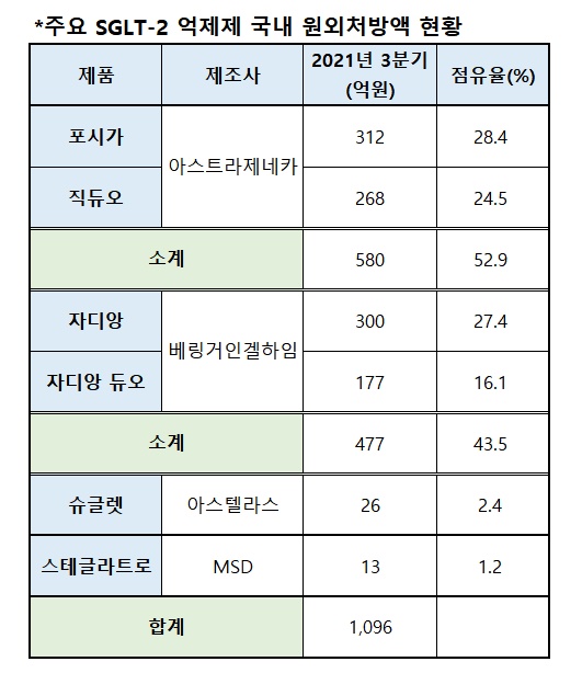 국내 SGLT-2 억제제 시장은 포시가가 선도하고 있다.