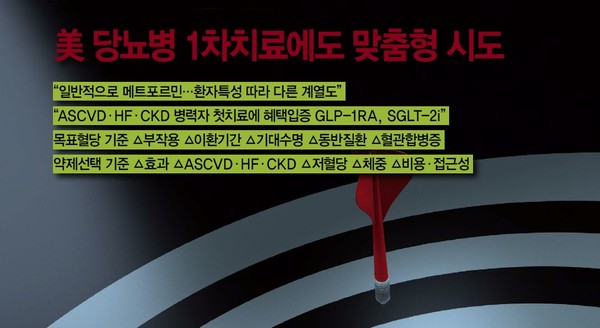 즉, 심혈관질환·심부전·신장질환 병력자이거나 심혈관질환 고위험군일 경우 당화혈색소(A1C) 기저수치, 개별화된 A1C 목표치, 또는 메트포르민 사용에 관계없이 GLP-1수용체작용제나 SGLT-2억제제를 우선 고려해볼 수 있다는 것이다.