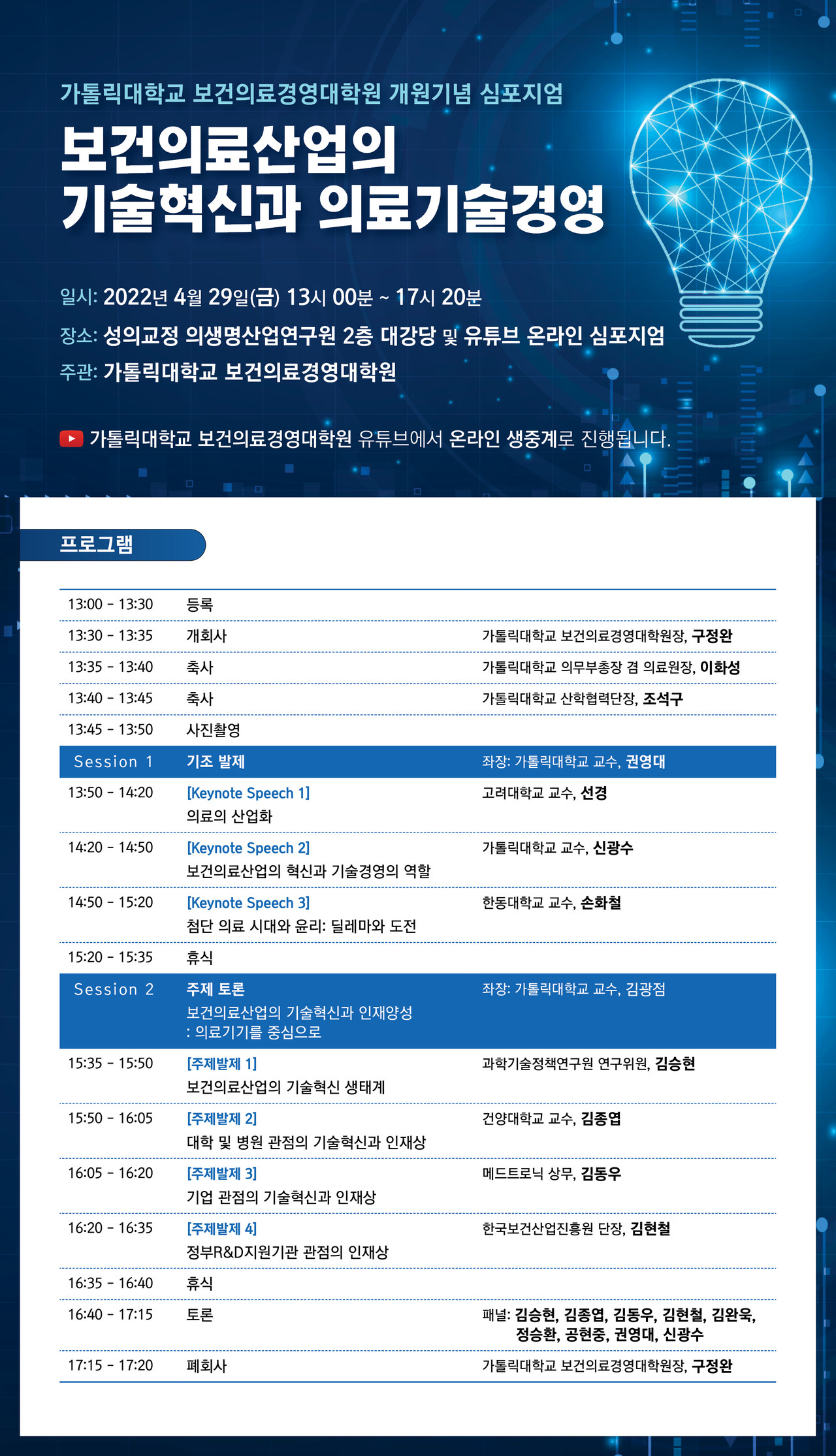 유튜브 '가톨릭대학교 보건의료경영대학원' 채널 생중계 예정