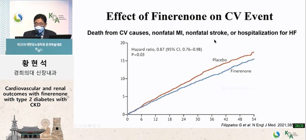 황 교수는 "신장에 대한 1차 및 2차 목표점과 CV 아웃컴을 봤을 때 오히려 GLP-1 수용체 작용제를 사용하지 않았을 때 케렌디아는 효과가 있었다"며 "추가 효과는 없는 것으로 보인다"고 말했다.