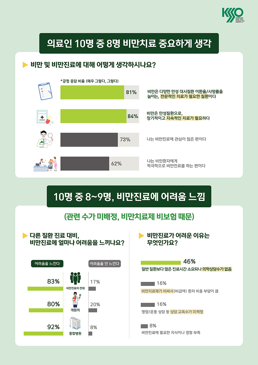 비만치료 중요성과 필요성에 대한 높은 인식에도 불구하고 의료진의 80~92%는 진료에 어려움을 느끼고 있었다.