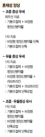 3) 조증과 우울 증상이 서로 비슷한 혼재성 양상의 치료