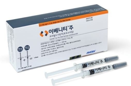 연구팀은 FRAME 연구에서 이베니티(210mg)를 매달 12개월 피하로 투여한 군과 대조군을 1:1 무작위 배치했다.
