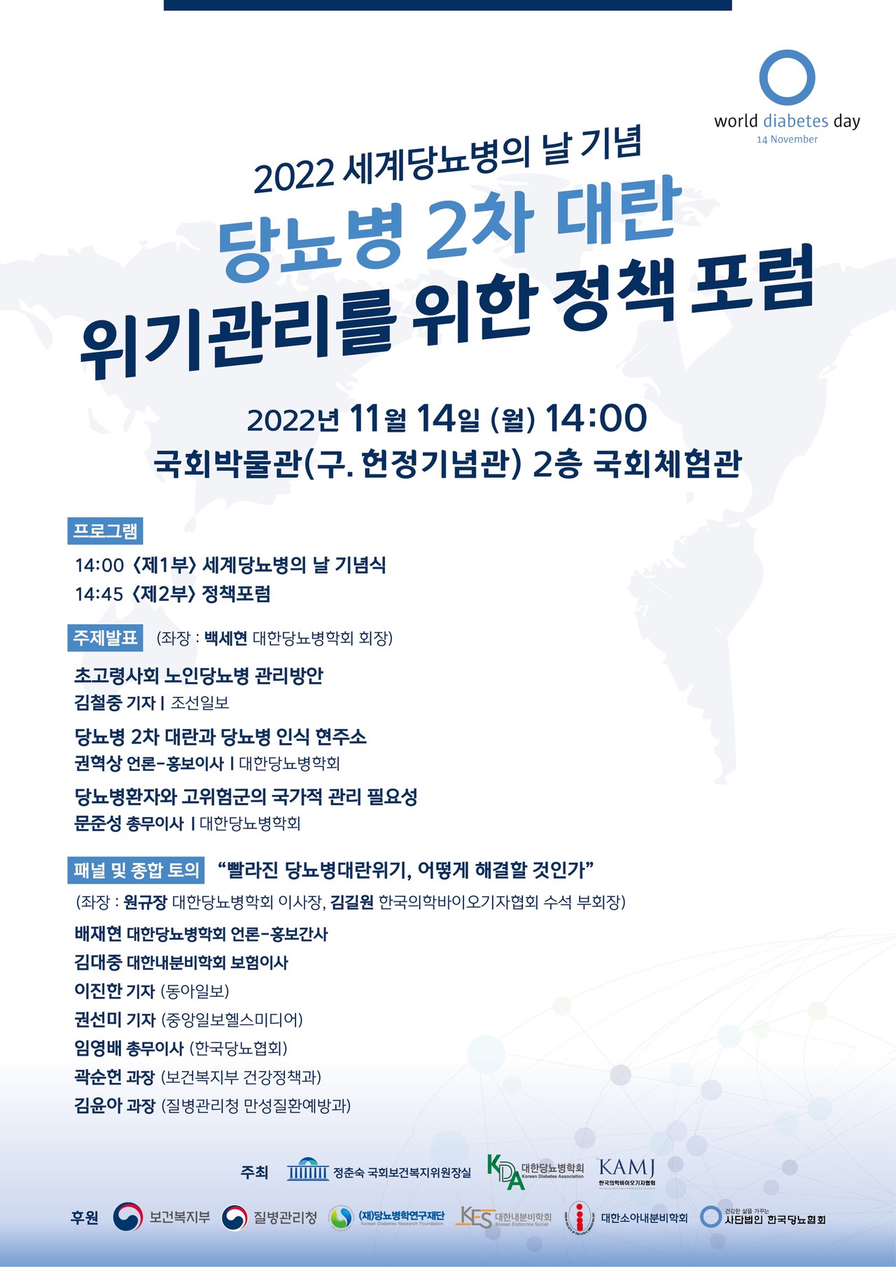 포럼은 세계당뇨병의 날 기념식에 이어 주제 발표와 패널 및 종합 토의 순서로 진행된다.