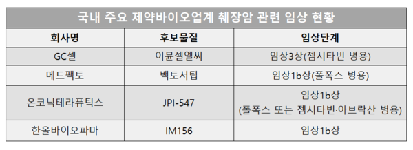 여기에 도전장을 내민 국내 제약사들이 있다. GC셀, 한올바이오파마, 제일약품 자회사인 온코닉테라퓨틱스, 메드팩토가 그 주인공.