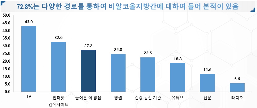 응답자 72.8%는 다양한 경로를 통해 비알코올 지방간질환을 들어본 적이 있다고 답했다.