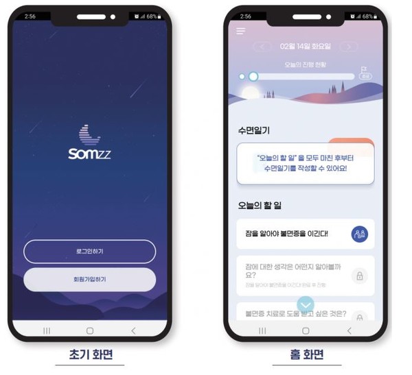 불면증 환자가 의료기관을 방문해 솜즈를 처방받으면 잠드는 시각, 일어난 시각 등을 기입할 수 있는 수면일기를 통해 실시간 피드백이 가능하다.
