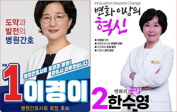 [메디칼업저버 신형주 기자] 제25대 병원간호사회 회장 선거 후보로 이경이 서울대병원 간호본부장과 한수영 세브란스병원 간호부원장으로 압축됐다.