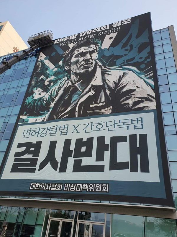 비대위는 최근 의협 회관 정면에 걸린 간호법 및 의사면허박탈법 저지 포스터 그림과 관련해 유지 여부도 논의했다.