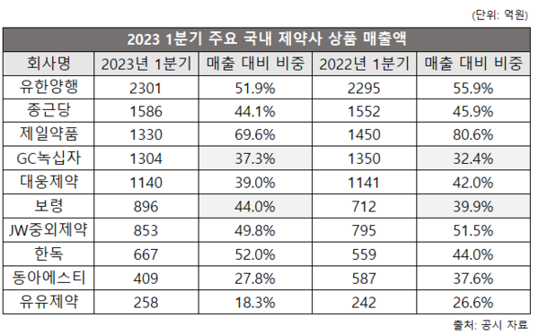 상품 매출은 전년 동기 대비 하락세...유한양행∙종근당 등 비중 감소