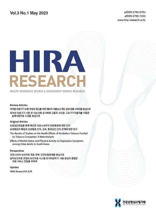 [메디칼업저버 박서영 기자] 건강보험심사평가원은 지난 31일 학술지 HIRA Research 제3권 1호를 발간했다고 7일 밝혔다.